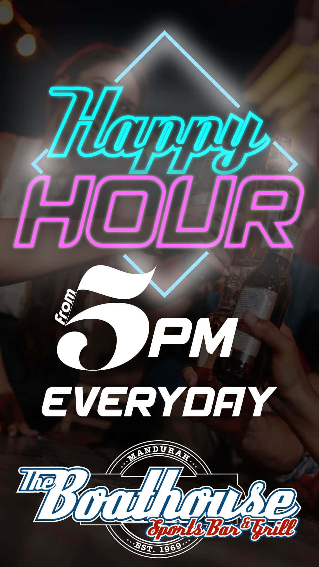 Join us for Happy Hour 5pm-6pm, every day of the week