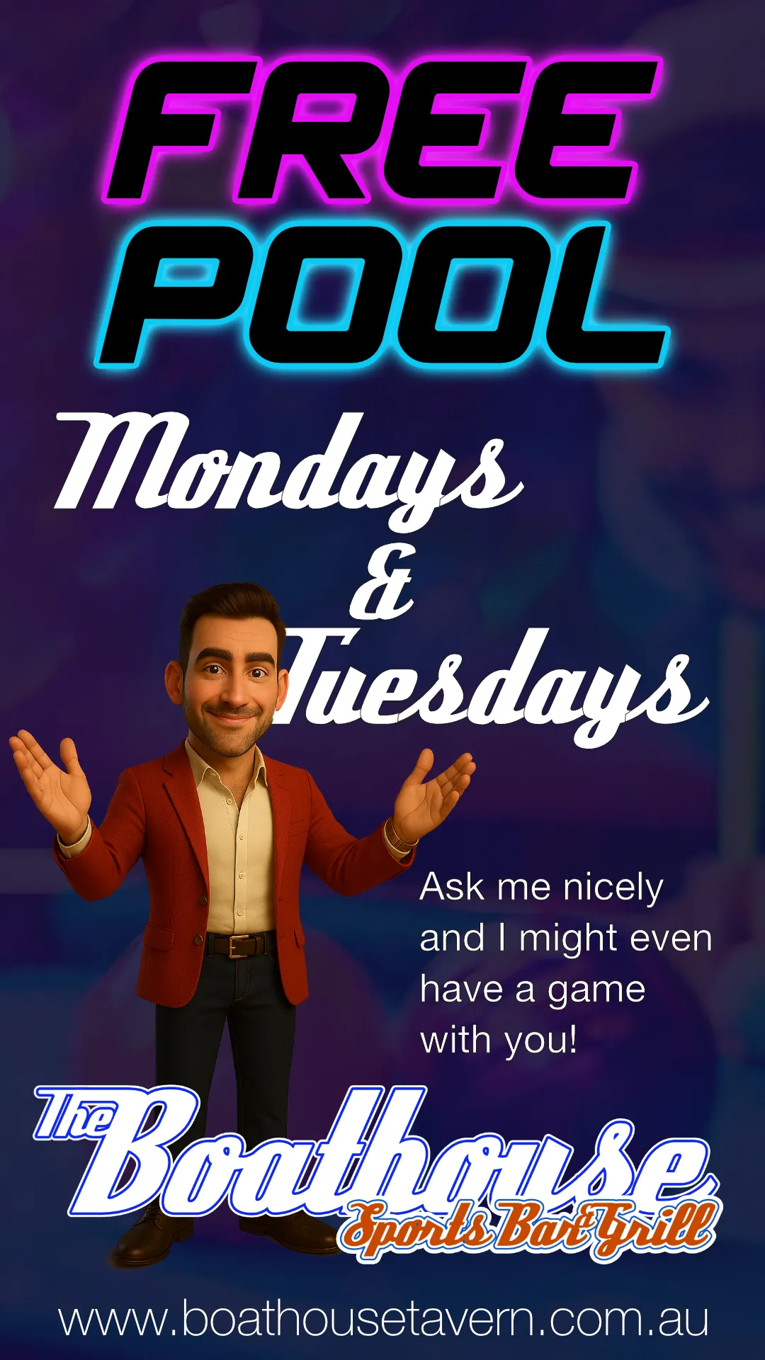 The Boathouse Sports Bar and Grill is just a few minutes from the Mandurah forshore. The new "Galley" offers a range of specials for lunch and dinner. The Boathouse is a place for all the locals and visitors alike. The new outside beer garden offers a refreshing atmosphere with the ability to wine and dine under the blue skies and stars.